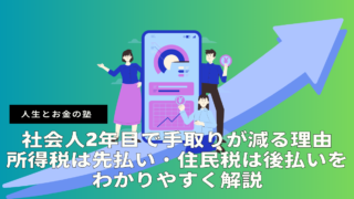 貯める 【2026年版】社会人2年目で手取りが減る理由|所得税は先払い・住民税は後払いをわかりやすく解説 社会人2年目になると手取りが減るのはなぜ?その理由は住民税の支払いが始まるからです。所得税は先払い、住民税は後払いという税金の仕組みを、社会人2年目の会社員向けにわかりやすく解説します。 2026.03.16 貯める